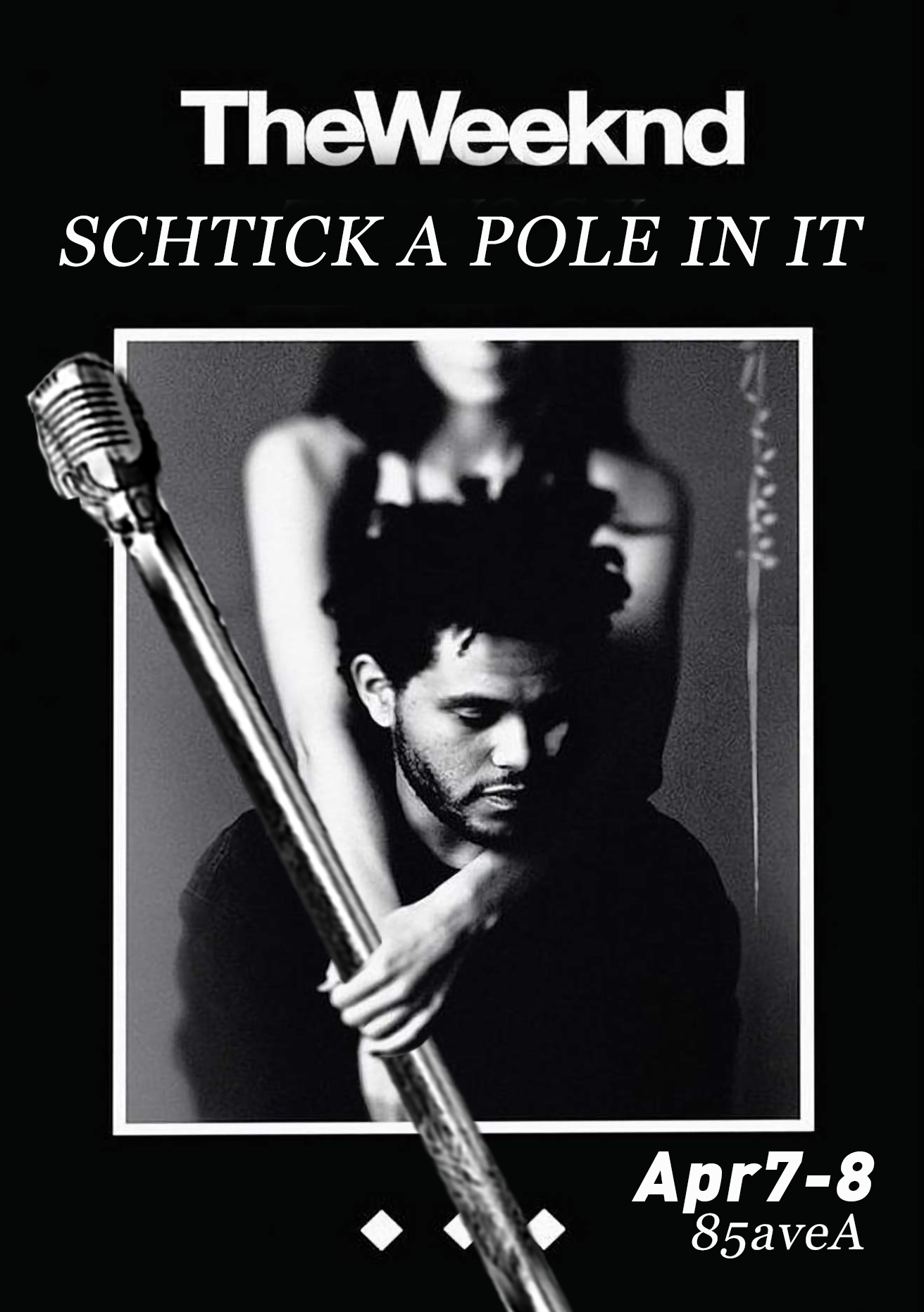 From comedians Dan Goodman and JoAnna Ross comes NYC's best and only, Comedy and Pole Dancing show. As featured in the NYTimes, TimeOutNY, and AMNY Schtick a Pole In It starts with a comic and ends with a pole dancer. 5 comics and 5 dancers. Comics tell jokes. Pole dancers pole dance. They’re not strippers, it’s not burlesque. It’s an aerial dance with a side of crazy gymnastics and death defying tricks that make your jaw drop.